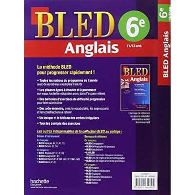 La méthode Bled pour progresser rapidement !- Toutes les notions du programme de l’année avec de nombreux exemples traduits.- Les phrases types à écouter et à prononcer sur www.hachette-education.com, dans l’espace élèves- Des batteries d’exercices de difficulté progressive pour bien s’entraîner- Des aide-mémoire, avec le vocabulaire, les expressions et les constructions à retenir- Un lexique et les conjugaisons types- Tous les corrigés des exercices